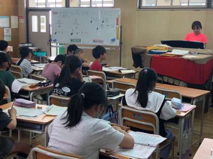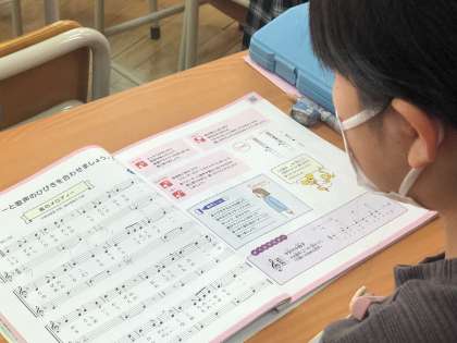 8分の6拍子について意味を学習しました。また、息の流れを意識して歌う歌い方も学習しました。