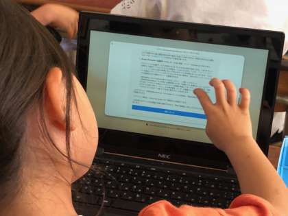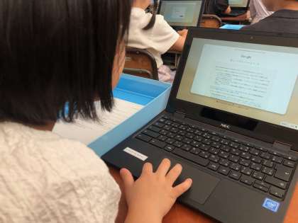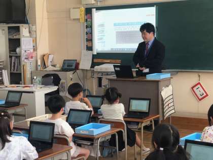 今日はICT支援員さんが学校に駐在している日で、ログインの仕方や入力の仕方、これからどんなことに使うのかについて習いました。子どもたちも、わりと早く入力や操作ができました。