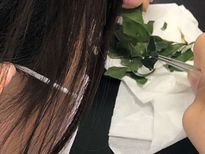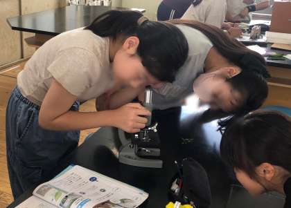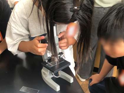 顕微鏡の焦点を合わせるという微細な作業は、まさに科学者です。子どもたちは、接眼レンズを通して見えた気孔の様子に感動していました。