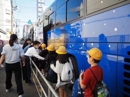 掲載の順番が前後しましたが、バスに乗る直前の子どもたちです。みんなわくわくしています!