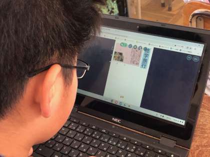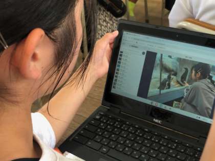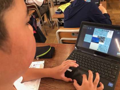 6年の総合は、修学旅行について新聞にまとめています。一人一台端末を活用して、画像データを貼り付けたり記事を入力したりして新聞を作成しています。