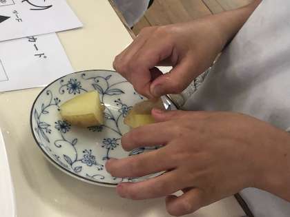 茹でかに注意しながら、じゃがいもを茹でました。ちょうどいいできあがりでした。これで、自然体験学習のカレーづくりもうまくいきそうです。