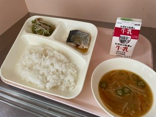 6月12日(水)、今日の給食は「さごしのおろしじょうゆかけ・みそ汁・野菜いため・ごはん・牛乳」です。