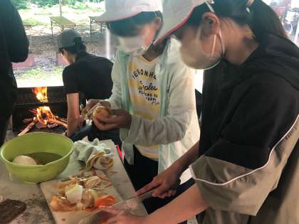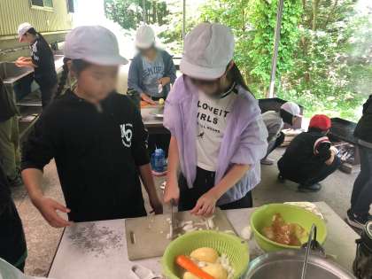 カレーの具材を切っています。