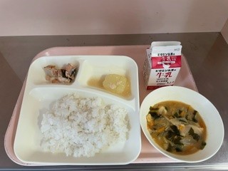 7月1日(月)、今日の給食は「さけのしょうゆ風味焼き・みそ汁・とうがんの煮もの・ごはん・牛乳」です。