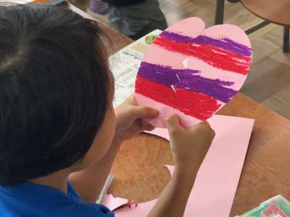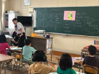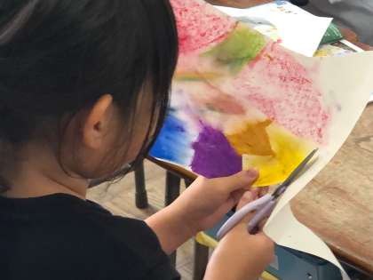 2年の図工は、題材「ふしぎなたまご」について取り組みました。子どもたちは思い思いの色や形のふしぎなたまごを描いて切り取っていました。