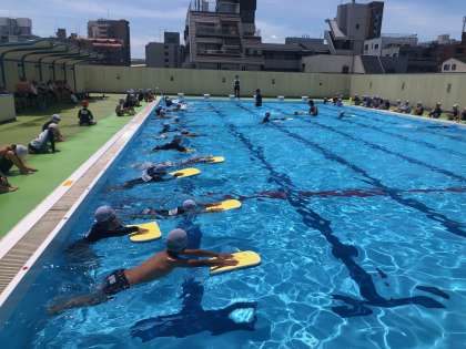 2年生は水に慣れることが目標ですが、け伸びをしたりプールに縦に泳ぐ(25m)ことにもチャレンジしました。みんな一生懸命にがんばりました。