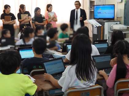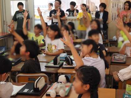 国語科で育てている力である文章をしっかりと読む力、本文の叙述から大事なところを見つける力、自分の考えを持ちグループで話し合う姿等に加えて、児童に配付されている一人一台端末を学習に活用する姿等、授業の中でいろいろな学ぶ姿が見られました。