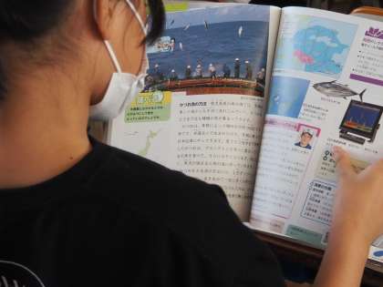 今日は、かつお漁について学習しました。教科書の資料や映像資料等から、かつお漁について調べました。