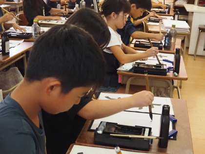 筆の入り方や、字のバランスに気をつけて集中して書いています。