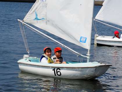 このヨットは、バラスト(船のバランスを取るために船の底に置く重し)の入ったセンターボードをさしこむ構造であることと、ヨットに乗る人のからだが艇内に深く収まるので重心が低くなり、横転や転覆することがないそうです。また、艇体に浮力があり、水がいっぱいになっても沈まない構造です。