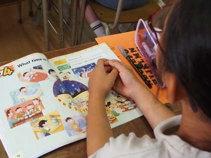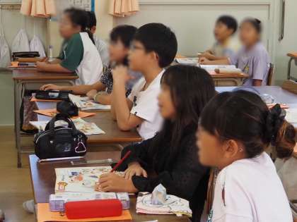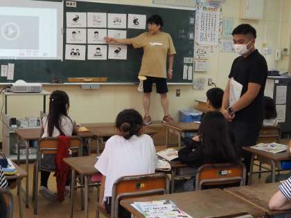 4年の英語活動は、たくさんの絵カードを使って、今何をする時間なのかを英語で話していきました。また、C-NETの先生からは、たくさんの英単語の発音を学びました。