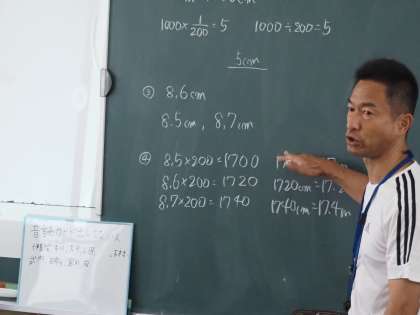 今日は、比例する2つの数量(xとy)の関係をグラフに表し、特ちょうを調べる学習です。方眼に実際に点(.)を書き込んで、調べました。