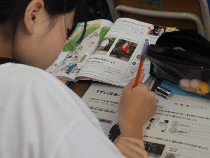 夏場には、薄手の生地の衣服を選ぶ、白い色の衣服を着る等、自分の生活から想起して快適な過ごし方について学びました。