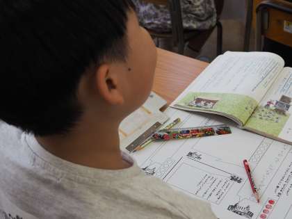 2年の国語は、教材文「ニャーゴ」です。登場人物であるねこやネズミの様子を思い浮かべながらセリフを練習しました。
