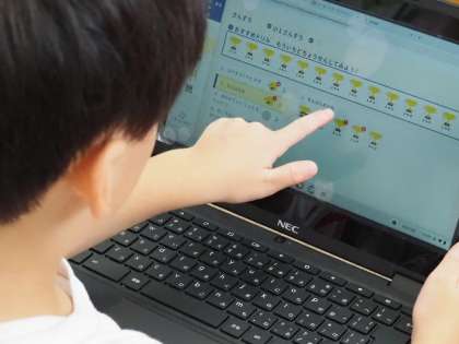 1年の算数では、学習の週末の時間を使って、一人一台端末でデジタル算数ドリル(ナビマ)に取り組みました。子どもたちは自分のペースでどんどん問題を解いています。