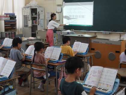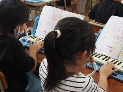2年の音楽は、♪山のポルカ♬を鍵盤ハーモニカで演奏しています。