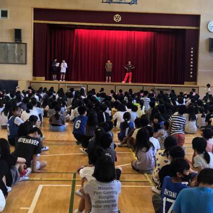 今日の児童集会は、体育館で集会委員会によるゲームがありました。