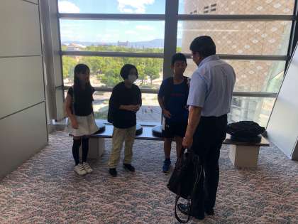 鑑賞後に、代表児童が新聞の取材を受けました。