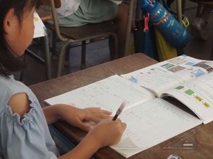 2年の算数は、「さんかくやしかくの形をしらべよう」です。