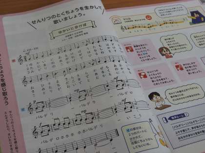 4年の音楽では、♪ゆかいに歩けば♪の曲を学んでいます。