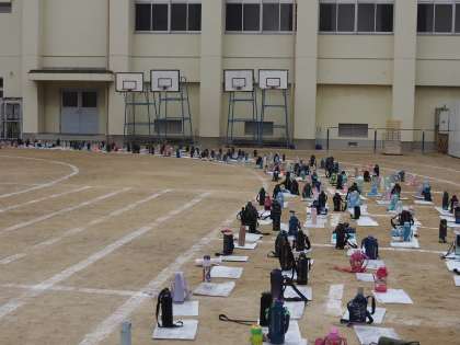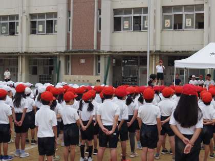 開会式の練習です。昨年度の優勝トロフィーの返還もしました。来週末の運動会に向けて、ムードが高まってきました。