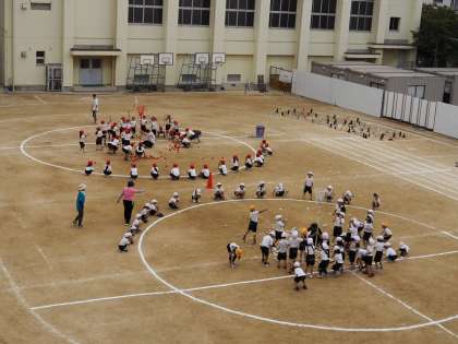 1年生の体育では、今週末27日(日)の運動会に向けて、練習のまっ最中です。