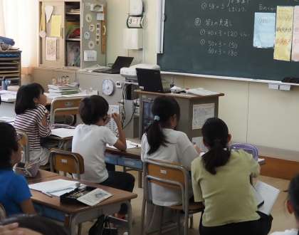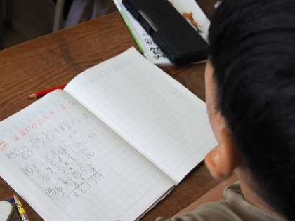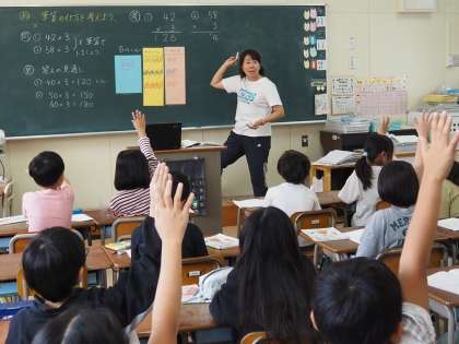 答えがいくつになるのかについて見通しを立てたり、筆算の計算式でくりあがりの数をどこにおいておくのかについて、一つ一つていねいに学習しています。