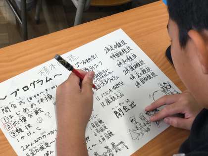 朝の会に、27日(日)の運動会の児童用プログラムが配られました。高学年児童は、委員会活動ごとに、準備等役割があり、そちらも忘れずにチェックしています。