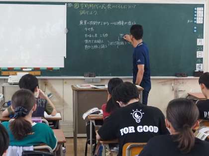 室町文化には、茶道や生け花、寺社建築等、今も残るたくさんの文化が、子どもたちは興味深く学んでいました。