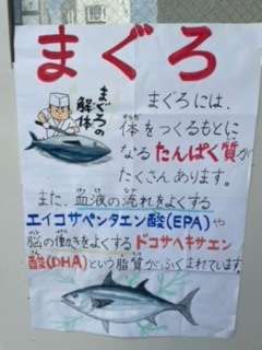 今日は児童に人気の「まぐろのオーロラ煮」でした。ケチャップと砂糖、赤みそを合わせたたれを揚げたまぐろにからませています。