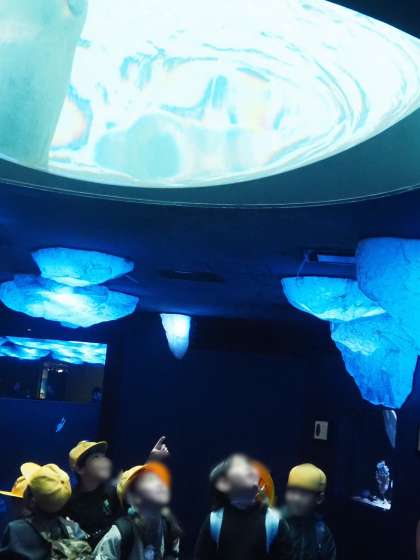 上の窓からイルカが覗いていました。