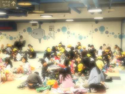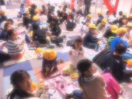 今日は寒いのでよかったです。みんな楽しそうに、友だちとお弁当を食べています。