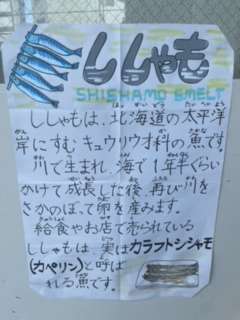 「焼きししゃも」は、年に1回だけ登場するししゃもを料理酒、みりん、綿実油で下味をつけてオーブンで蒸し焼きにしています。ひとり2尾ずつ、つきました。