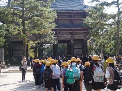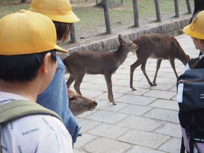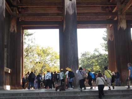 大きな東大寺南大門を出で、鹿にもさよならです。