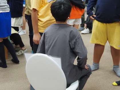 災害時用の簡易トイレの体験です。