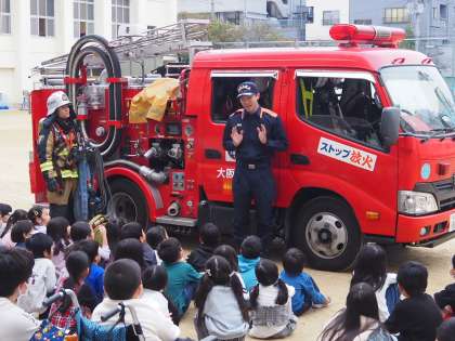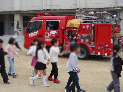 11月16日 防災学習1 公開日 2024/11/16 更新日 2024/11/16 お知らせ 今日は、土曜学習の日です。 学校では、全校児童が、地震や火災、水害から命や安全を守る必要性について学んだり、避難に関する知識や方法を身に付けたりする等の防災学習に、地域や区役所、消防署と連携して取り組みました。 1.港消防署…消防車見学、消火器体験、煙避難体験 2.港区役所…地震のメカニズムや避難の仕方等についてのオンライン講話 3.学校に備蓄している災害時の物資、簡易トイレ・ベット体験 いいね(0)