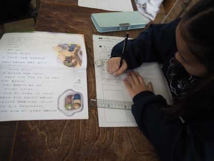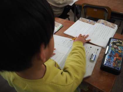 教科書の文中から、時や場所に関する言葉を見つけて抜き出し、どんなお話なのかについて整理しました。