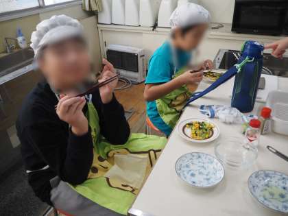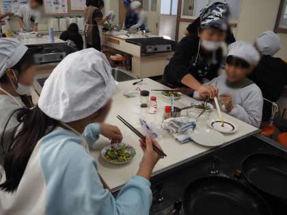 ハムと野菜の炒め物です。最後に塩と胡椒の加減も大事です。