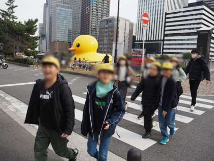 堂島川を渡り、ABCテレビ前でひよことエビシーにさよならしました。