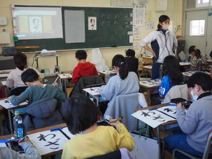 今日の書写は、ひらがなで「わざ」という字を書きました。