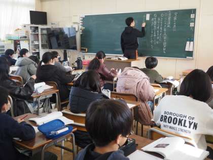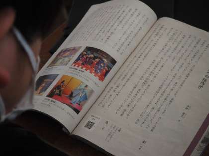 国語の授業は、「古典芸能への招待状」「宇宙への思い」の教材に取り組んでいます。