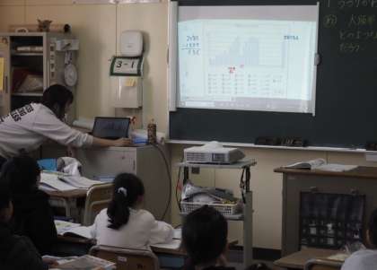 教科書の大阪市の人口の推移のグラフをもとに、どのようにくらしが変わってきたのかを調べる学習の導入をしました。12月の「くらしの今昔館」の社会見学を想起し、調べていきます。
