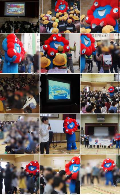 今日、ミャクミャクの学校訪問がありました。