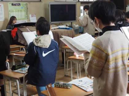 今日は、いきものがかりの、♫ありがとう♪の歌を歌いました。卒業が近づく6年生にはぴったりの歌ですね。