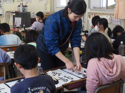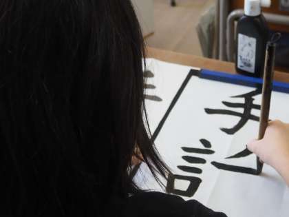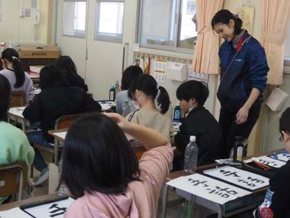 今日は、「手話」という字を書きました。跳ね、折れ等、書くポイントがいろいろあるこの字に、気持ちを集中させて取り組んでいます。
