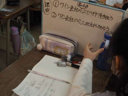 今日は、柏原市のぶどう農家の特色や工夫等について学習しました。