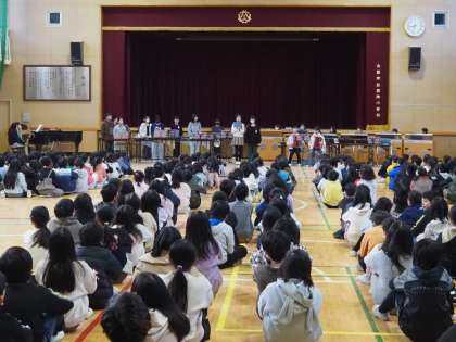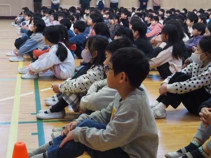 トトロのテーマ♩とコナンのテーマ♪の2曲の演奏を披露しました。朝から爽やかな気分になりました。クラブ活動は、4〜6年生が学年学級の枠を超えて活動しています。来年度からいよいよ参加する現3年生もわくわくしていました。