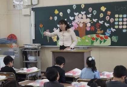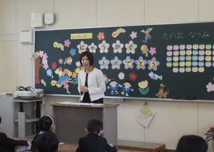 入学式の後、新1年生は、教室に入り、自分の机やいすの場所に座り、担任の先生とお話ししました。