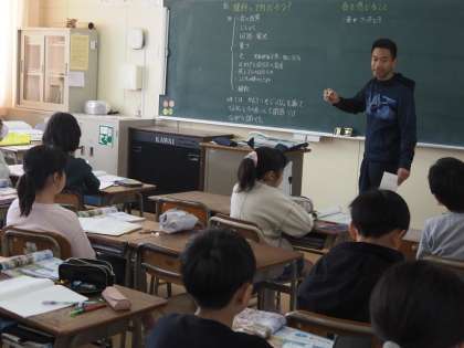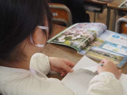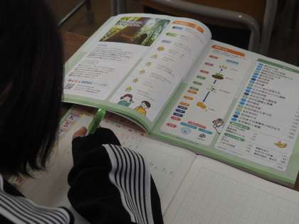 4年の理科は、3年で学習した単元名をふり返り、4年の教科書のもくじを見ながら、1年間の学習のオリエンテーションをしました。